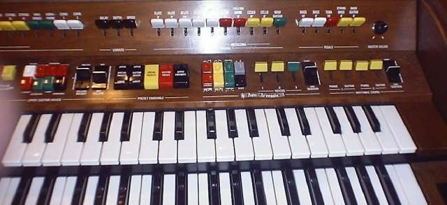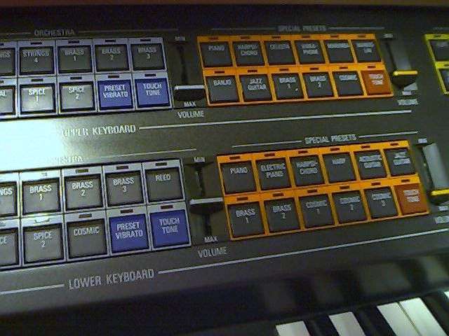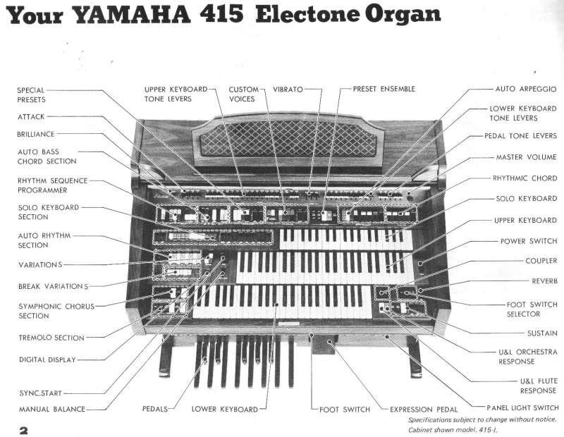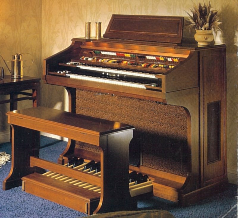 I'm guessing this was a pretty late model analogue organ. It's mostly traditional organ, but the custom voices and special presets retain some synth characteristics. Functionally, this shares many similarities with the spinet 415 - though obviously it includes a few things the 415 doesn't, like extra flute pitches, and the three preset pistons, and it lacks the 415's solo synth.