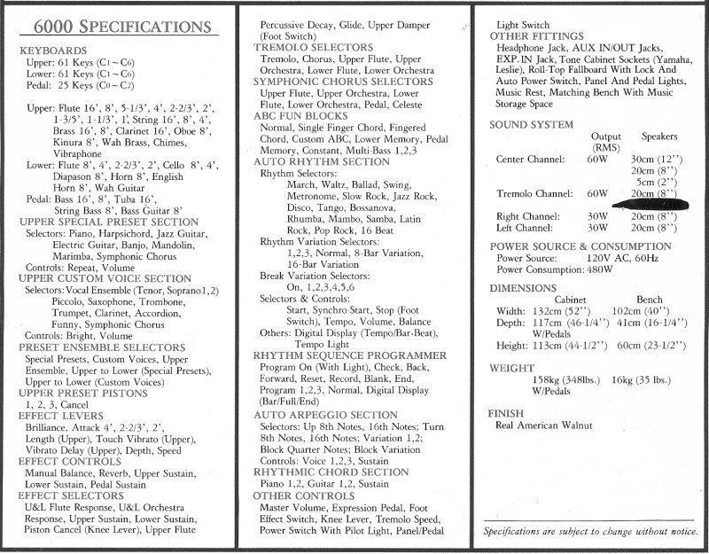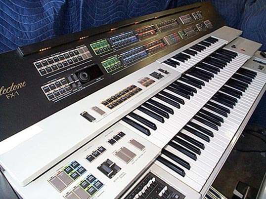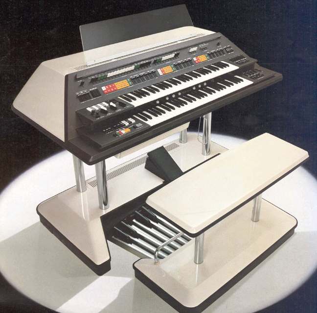 The Yamaha GX-1 wasn't really an organ, but a polyphonic analogue synthesizer in an organ-shaped cabinet. Each 61 note manual featured the equivalent of an 8-voice Yamaha CS-80 synth, the pedals contained a further monophonic (but multiple oscillator) synth, and the top 37 note manual operated yet a further mono-synth.