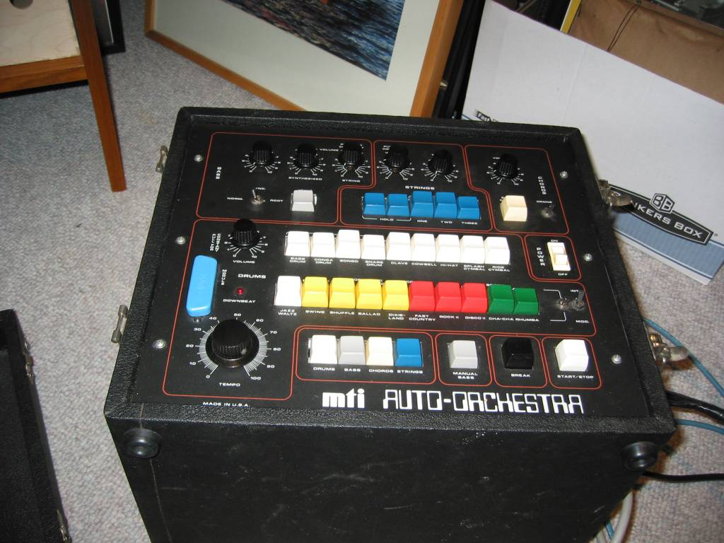 The MTI Auto-Orchestra was designed as an accompaniment device. It's got a drum machine, a bass section, a strings section and a syncopated chord section.