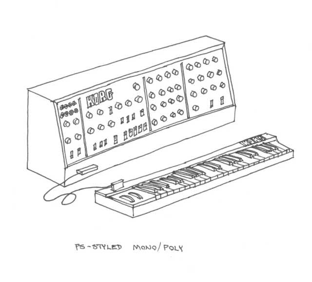 Since people sometimes think about repackaging synths in different guises (well a few people, at least...) here's a sketch of a fanciful Mo/Po repackaging idea-- why not put a Mono/Poly in a two part cabinet like