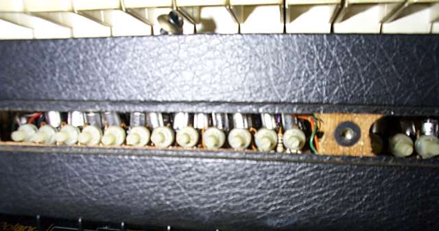 Unlike the PE-2000 and Lambda, the PE-1000 is not based on a top octave generator. Instead, it actually contains 60 discrete oscillators. Here, you can see an octave of the trim pots which allow the oscillators to be retuned.