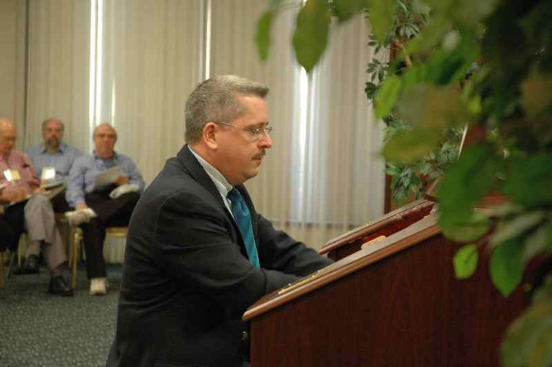 (L to R): Three of the founding members; Gus speaks while Jack looks on; Audience view.