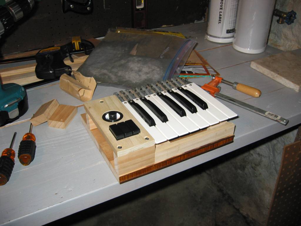 Rocker tablets from an old Yamaha organ are used to select chord type (major is the default, these switch to minor, diminished and seventh).