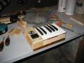 a pedal board for this 'experiment' so I chopped up an old unused Pratt-Read keyboard instead, as you can see below. The bass section pretty much